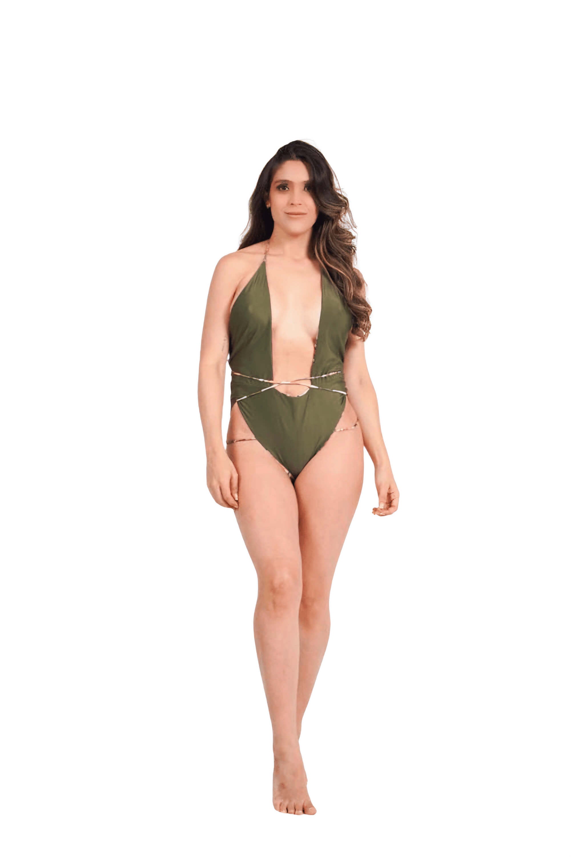 El Trikini Olive Glow es una pieza seductora, moderna y poderosa, diseñada para mujeres que aman destacar con elegancia natural. Su tono verde oliva agrega un toque sofisticado, mientras que el diseño con escote ultra profundo estiliza el torso y crea una silueta impactante.