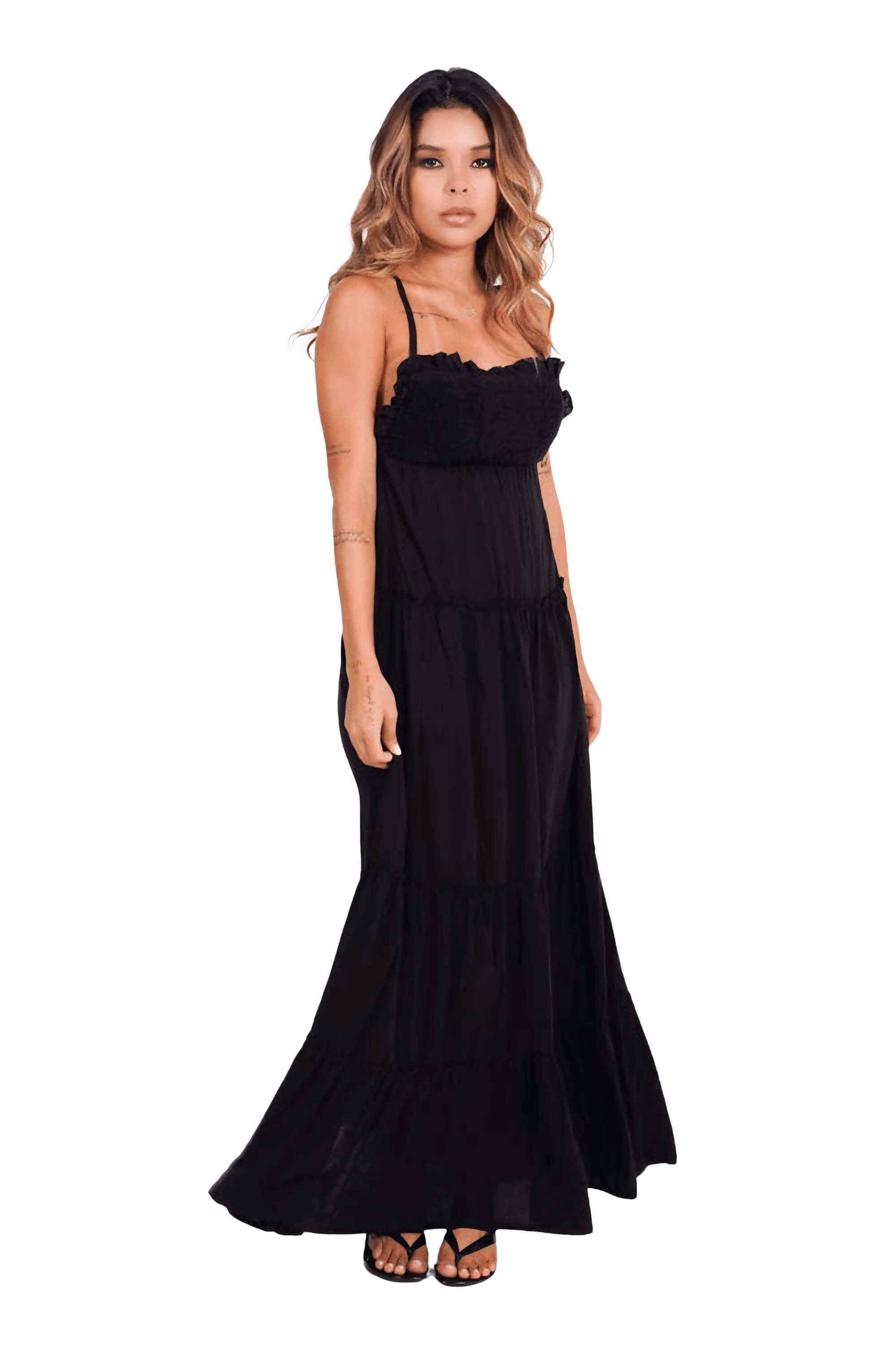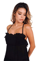 Vestido Black Breeze – Maxi con Espalda Cruzada y Detalles Fruncidos