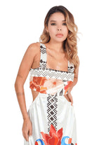 Vestido Selva Dorada – Maxi Dress con Cut-Out y Estampado Tropical